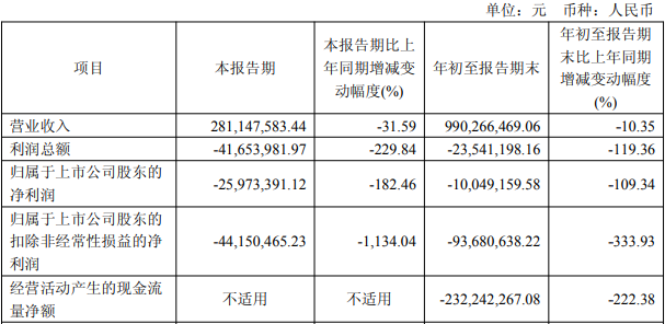 中国经济网北京12月19日讯芯源微(688037.SH)日前发布的2025年第三季度报告显示,今年前三季度,公司实现营业收入9.90亿元,同比减少10.35%;归属于上市公司股东的净利润-1004.92万元,同比减少109.34%;归属于上市公司股东的扣除非经常性损益的净利润-9368.06万元,同比减少333.93%;经营活动产生的现金流量净额-2.32亿元,同比减少222.38%。
