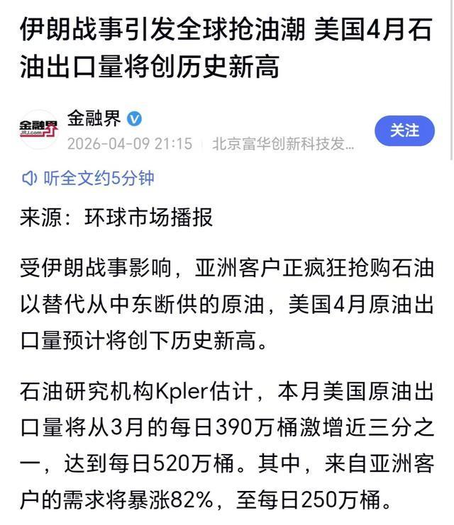 中东局势紧张,直接推高了石油价格,而美国一边封锁伊朗,一边自己出口创造历史新高。美国相当于用一场地缘冲突,给自己的能源产业送了一份超级大礼包。