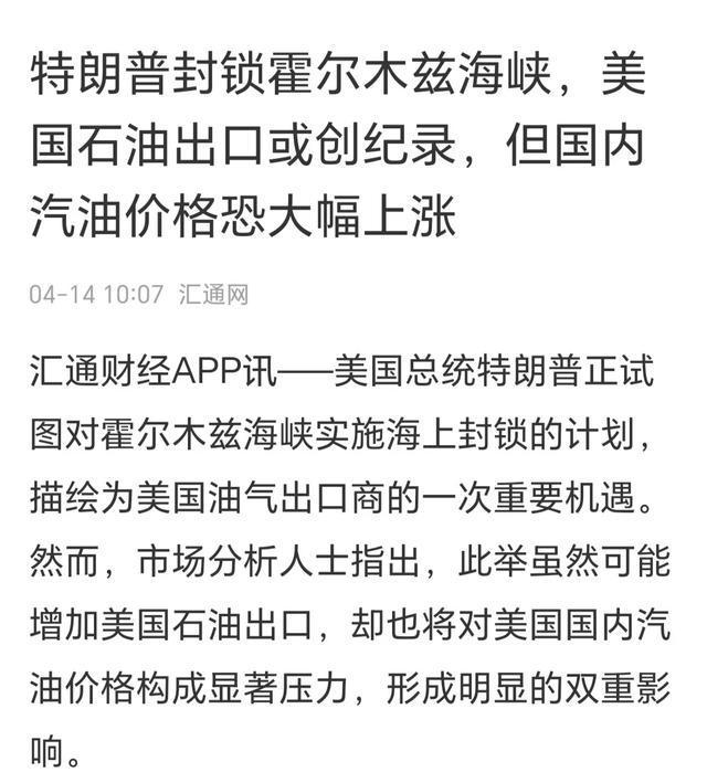 这场中东大战,不仅仅是军事胜负,还是对全球能源市场的争夺。美国想借封锁伊朗,把自己打造成全球能源的主导者,利用能源巩固地位。而美国的豪赌,赌的是全球离不开美国石油,赌的是伊朗扛不住封锁。